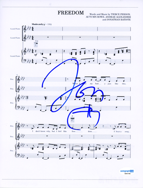 Jon Batiste Signed Autograph "Freedom" 8.5x11 Sheet Music Print We Are ACOA COA