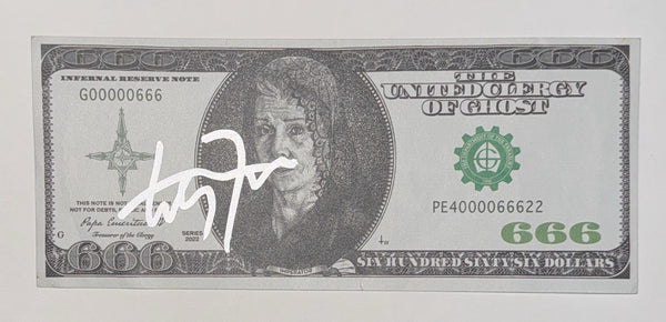Tobias Forge Ghost Band Signed Autograph 666 Dollar Bill Prop 2022 Beckett COA