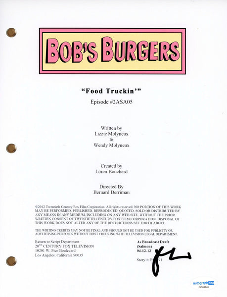 Dan Mintz “Bob’s Burgers” Signed Autograph ‘Food Truckin’ Script Screenplay ACOA