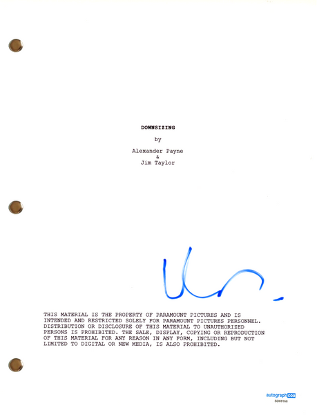 Matt Damon "Downsizing" Signed Autograph Movie Script Full Screenplay ACOA COA
